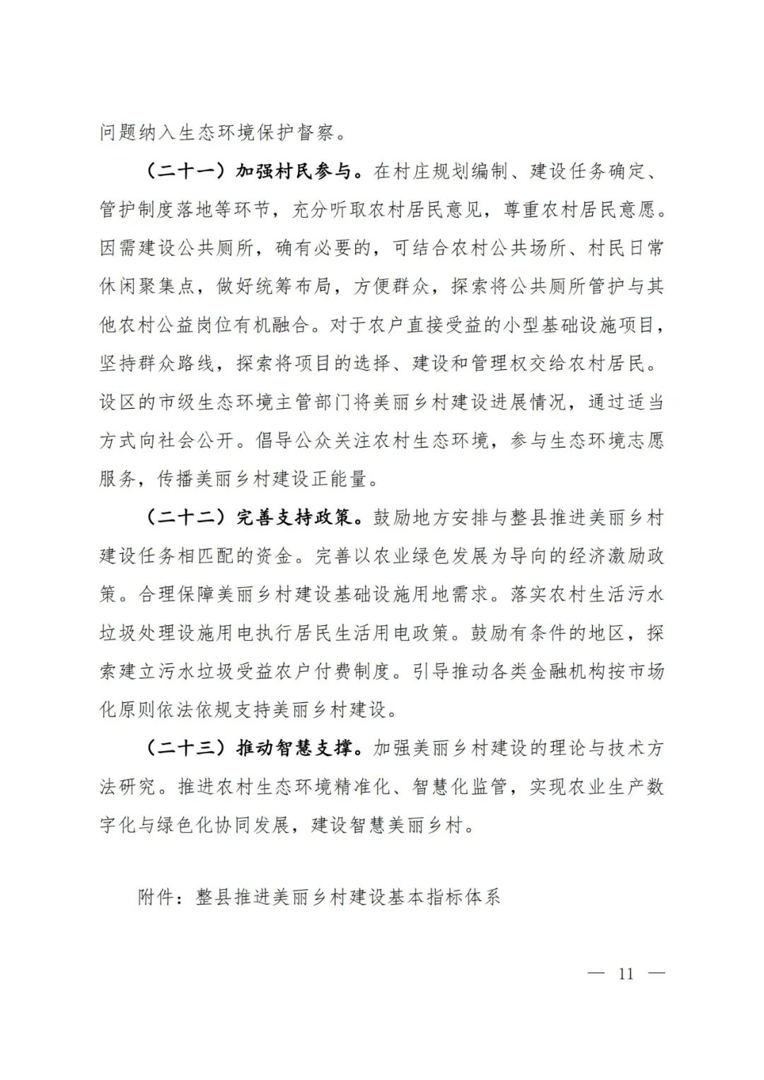 近日,生態(tài)環(huán)境部、農(nóng)業(yè)農(nóng)村部、國家發(fā)展和改革委員會、財政部、住房城鄉(xiāng)建設(shè)部等9部門聯(lián)合印發(fā)《美麗鄉(xiāng)村建設(shè)實施方案》(以下簡稱《實施方案》),提出4方面重點任務(wù)、18項重要舉措,加強農(nóng)村生態(tài)文明建設(shè),加大農(nóng)業(yè)農(nóng)村領(lǐng)域突出生態(tài)環(huán)境問題解決力度,整縣推進美麗鄉(xiāng)村建設(shè),助力美麗中國建設(shè)。