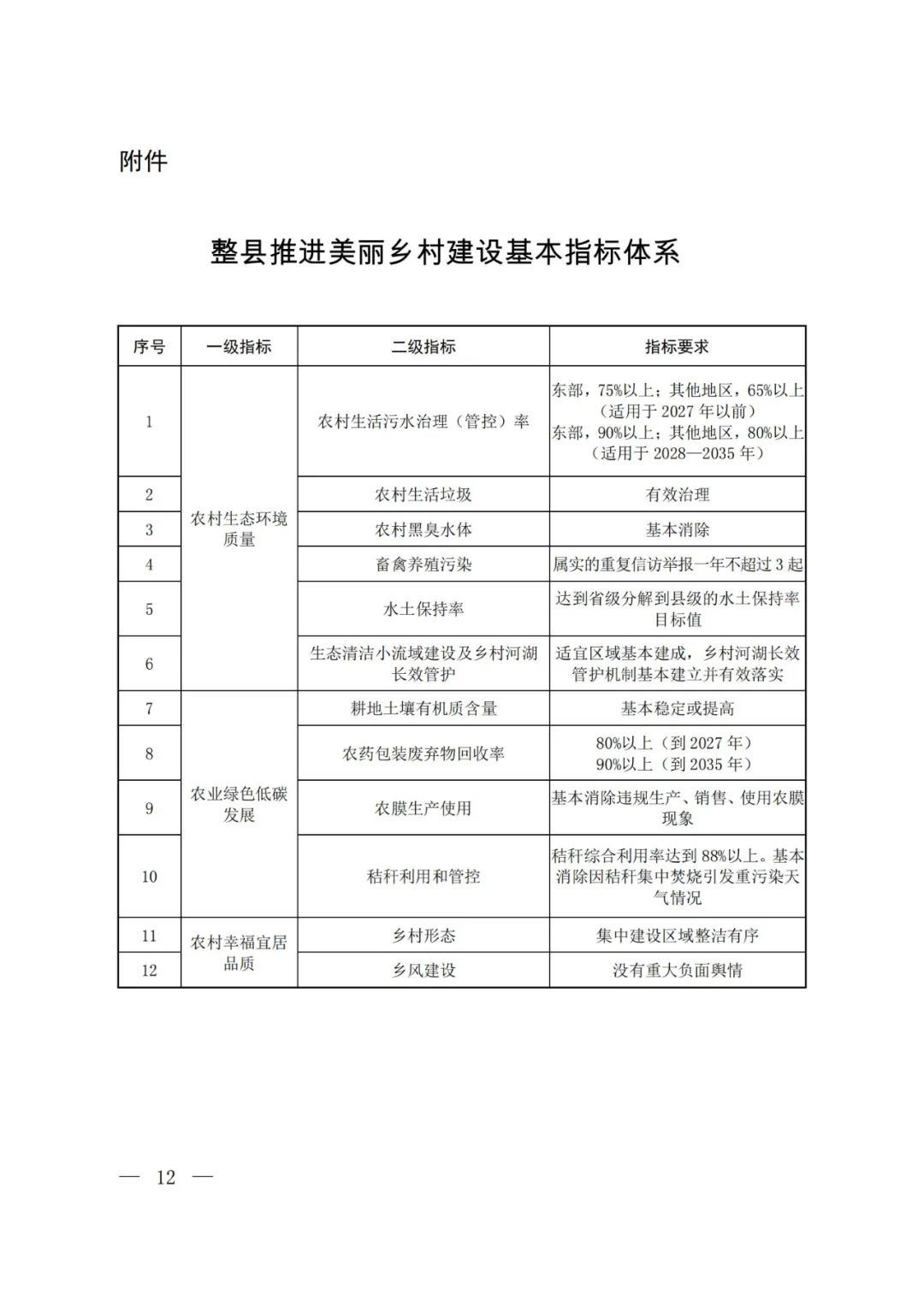 《實施方案》提出,到2027年,美麗鄉(xiāng)村整縣建成比例達到40%;到2035年,美麗鄉(xiāng)村基本建成,為老百姓留住鳥語花香、田園風光,讓農(nóng)村成為安居樂業(yè)的美麗家園。
