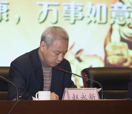 副董事長、運城盛世房地產(chǎn)開發(fā)有限公司總經(jīng)理趙永新宣讀《關(guān)于表彰2014年度突出貢獻(xiàn)單位及個人的決定》