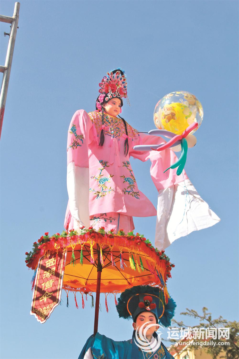 當天,河津市僧樓鎮(zhèn)帶來的表演分為“河汾門下”“風追大唐”“時代雄風”“春和萬象”4個篇章,通過原創(chuàng)古風舞蹈、武術、高蹺斗舞、轉(zhuǎn)花燈等多種表現(xiàn)形式,將傳統(tǒng)文化與現(xiàn)代藝術巧妙融合;河津市小梁鄉(xiāng)不甘示弱,馬拉鼓車、炫酷摩托車隊表演、花車舞獅、紙馬旱船、打花鼓等社火節(jié)目輪番上演。其中,馬家莊抬閣驚艷亮相,數(shù)米高的架子上,身著彩服保持固定姿勢的兒童賣萌搞怪,惹得大家捧腹大笑。